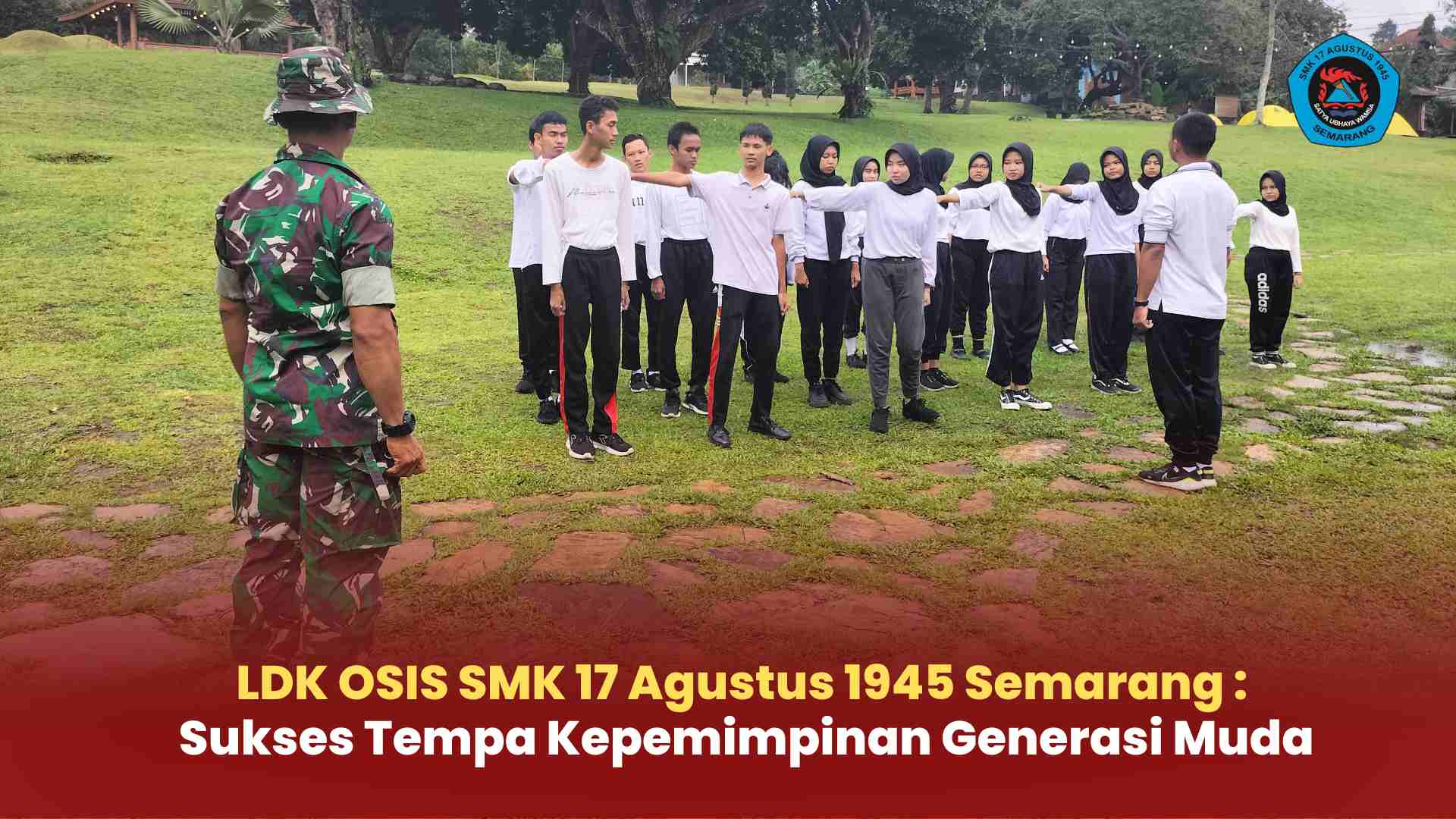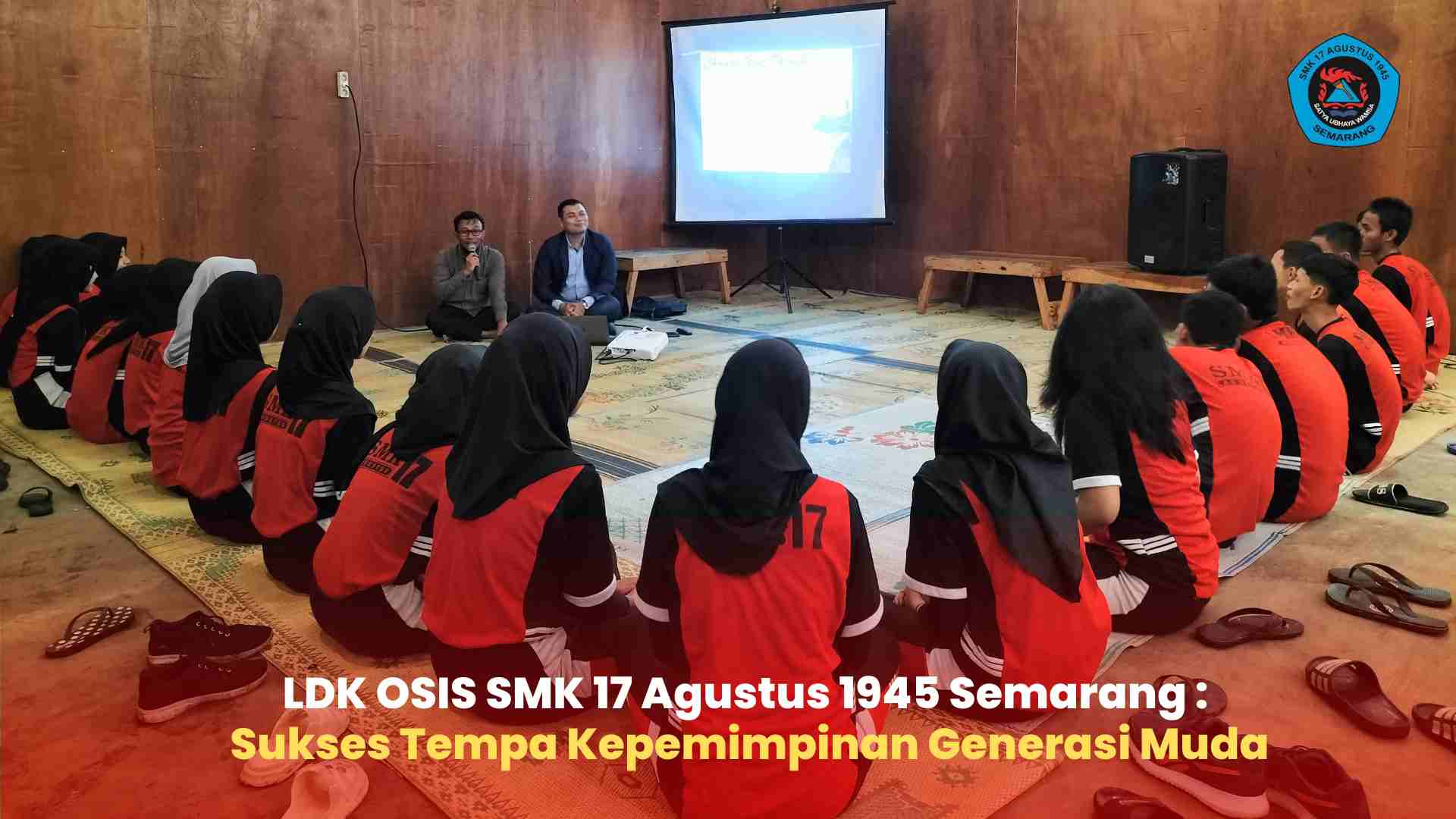 SMK 17 Agustus 1945 Semarang menyelenggarakan LDK OSIS untuk membekali siswa dengan kemampuan kepemimpinan dan karakter yang kuat. Kegiatan ini diikuti oleh seluruh pengurus OSIS dan berlangsung selama dua hari di Bukit Alam Bandungan. Bagi para siswa yang ingin mengembangkan potensi kepemimpinannya, ikuti LDK OSIS di sekolah Anda. LDK OSIS merupakan wadah yang tepat untuk belajar tentang kepemimpinan dan membangun karakter.