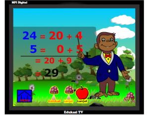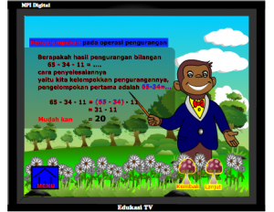 Pada CD interaktif ini Standar kompetensi yang dipilih adalah melakukan penjumlahan dan pengurangan bilangan sampai dua angka dalam pemecahan masalah dengan kompetensi dasar meliputi menentukan nilai tempat puluhan dan satuan, melakukan penjumlahan dan pe-ngurangan bilangan dua angka, menggunakan sifat operasi pertukaran dan pengelompokan, menyelesaikan masalah yang melibatkan penjumlahan dan pengurangan bilangan dua angka.