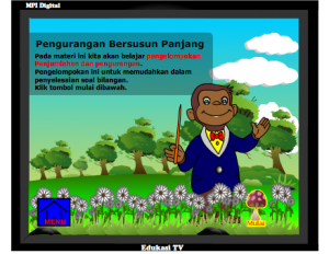 Pada halaman ini diberitahukan bahwa CD interaktif ini berisi pengenalan nilai tempat, penjumlahan dan pengurangan bersusun panjang yang disertai permainan yang berhubungan dengan materi.