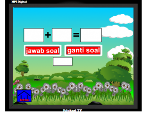 Halaman permainan terdiri dari 2 halaman. Halaman pertama berupa soal penjumlahan. Pada halaman ini user akan mengerjakan soal penjumlahan yang ditampilkan secara acak dengan cara mengisi angka dari hasil penjumlahan, berikutnya user mengecek jawaban yang dimasukkan dengan cara menekan tombol jawab soal, jika jawaban benar maka akan muncul tulisan benar dan jika jawaban salah maka muncul tulisan salah. User juga dapat mengganti soal yang tampil dengan cara menekan tombol ganti soal.