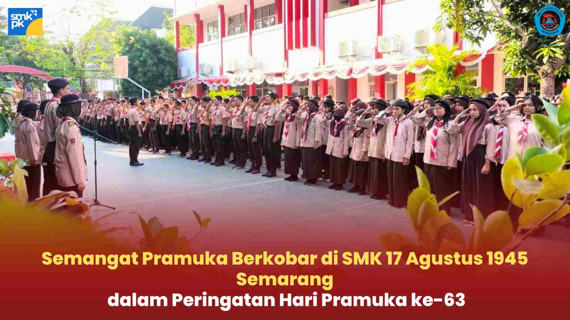 Semarak peringatan Hari Pramuka ke-63 terasa begitu kental di SMK 17 Agustus 1945 Semarang. Berbagai kegiatan menarik dan inspiratif digelar untuk merayakan hari jadi gerakan kepramukaan di Indonesia. Antusiasme siswa-siswi begitu tinggi, menunjukkan semangat kepramukaan yang terus berkobar.